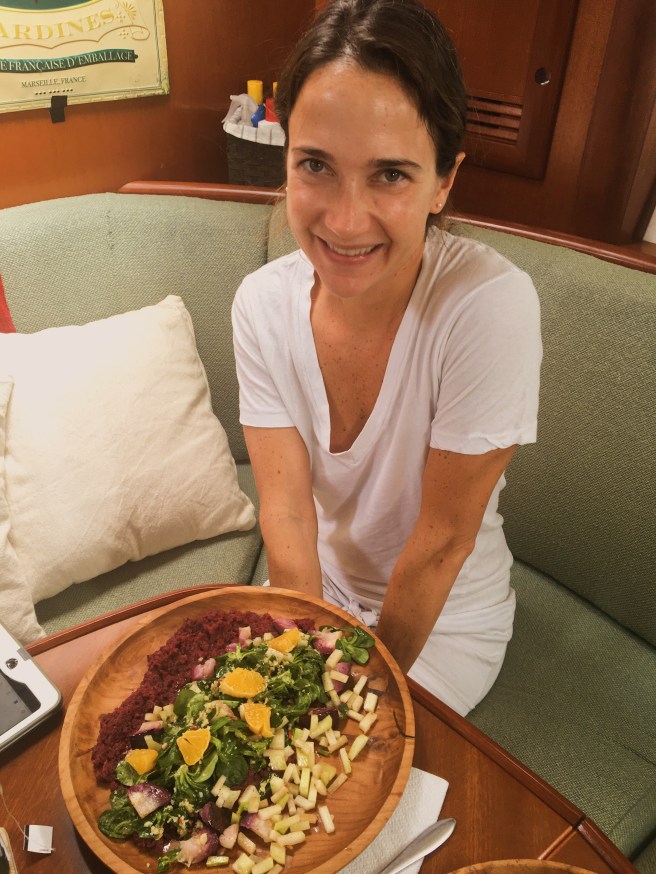 Dominica was hit hard by Hurricane Maria in late 2017, but eighteen months later, in a testament to the regenerative power of Mother Nature, we were met with lush, verdant landscapes in full recovery mode. We rented an AirBnB and stayed on land a couple of nights, basking in our well-ventilated room, reading, taking fresh water showers, and getting sleep in an unmoving bed. As we were leaving, we chatted with the house’s owner and mentioned we were heading back to our boat. A former sailboat cruiser, she understood our immediate priorities and graciously filled our arms with fresh organic veggies from her garden and hot out of the oven rolls she makes daily for a local restaurant.