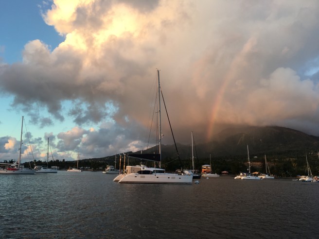 While out sailing on a day of baby squalls, Karl’s Mom was treated to one of the many scene-piercing rainbows that graced Jolly Harbour during our stay.